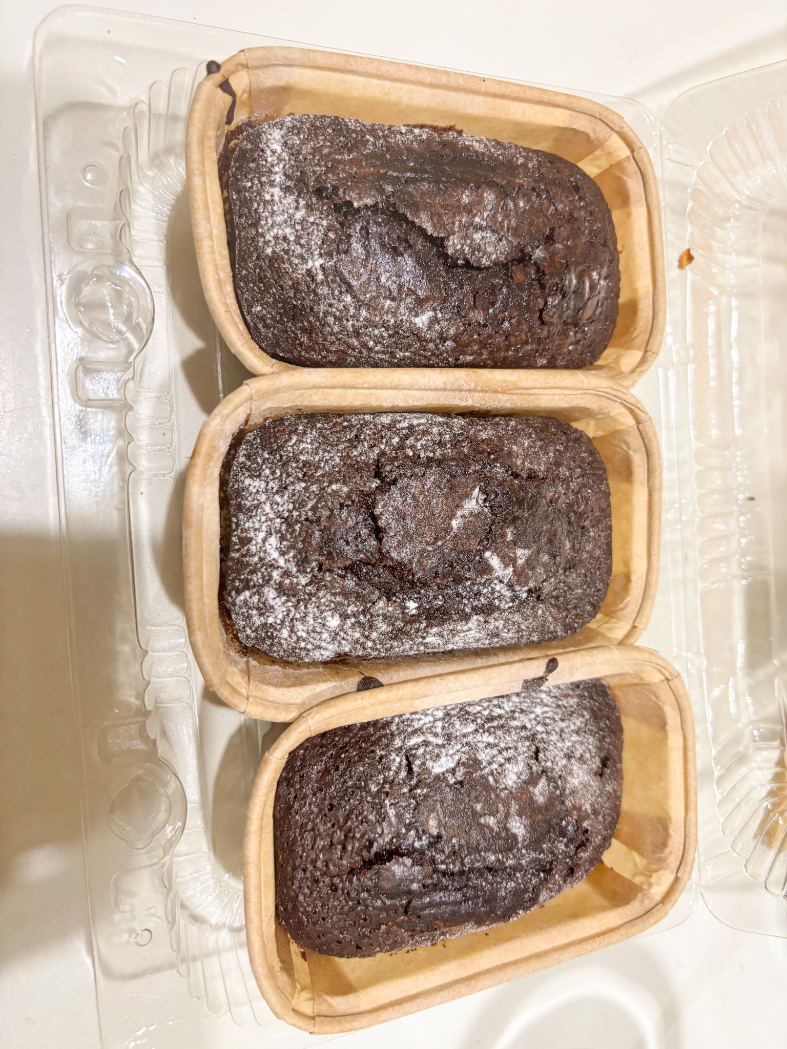 Dinner was the baked pizza with basil — separately bought — on for Penny, a croissant sandwich for the others. For dessert, dense little lava cakes. Three palm-sized cakes for $5, which we shared between us, all of us regretting that I hadn't bought another box.