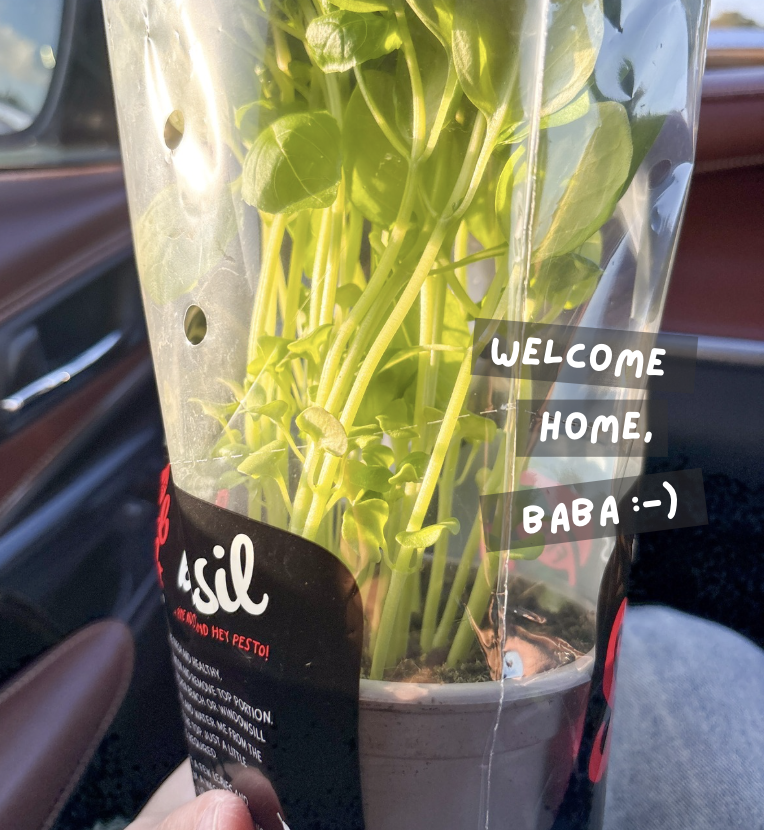Just one extra day of rest, and yet the last day moved gently. It wasn't until afternoon that I finally went out for groceries. Ham and cheese for the lunchboxes, morning tea snacks, milk, a little meat — that sort of shopping. Somewhere between the aisles, PeNnY — recently obsessed with putting basil on his pizzas — turned up holding a small basil plant. I'm not someone who keeps plants alive. The only thing I've managed to grow is spring onion, which more or less raises itself. But I took the pot anyway. On the drive home, I named her YuBaba, after the first character of my name. I looked up how to look after a basil plant — it'll need repotting, and pinching back the tips. Welcome home, Baba. Let's stay together a long time.